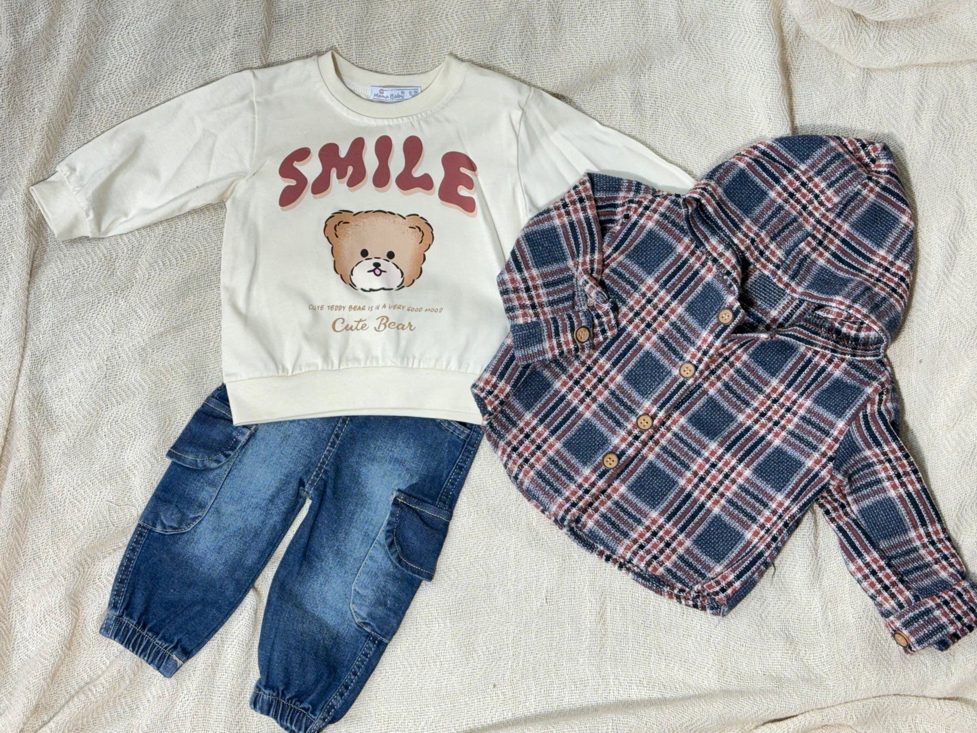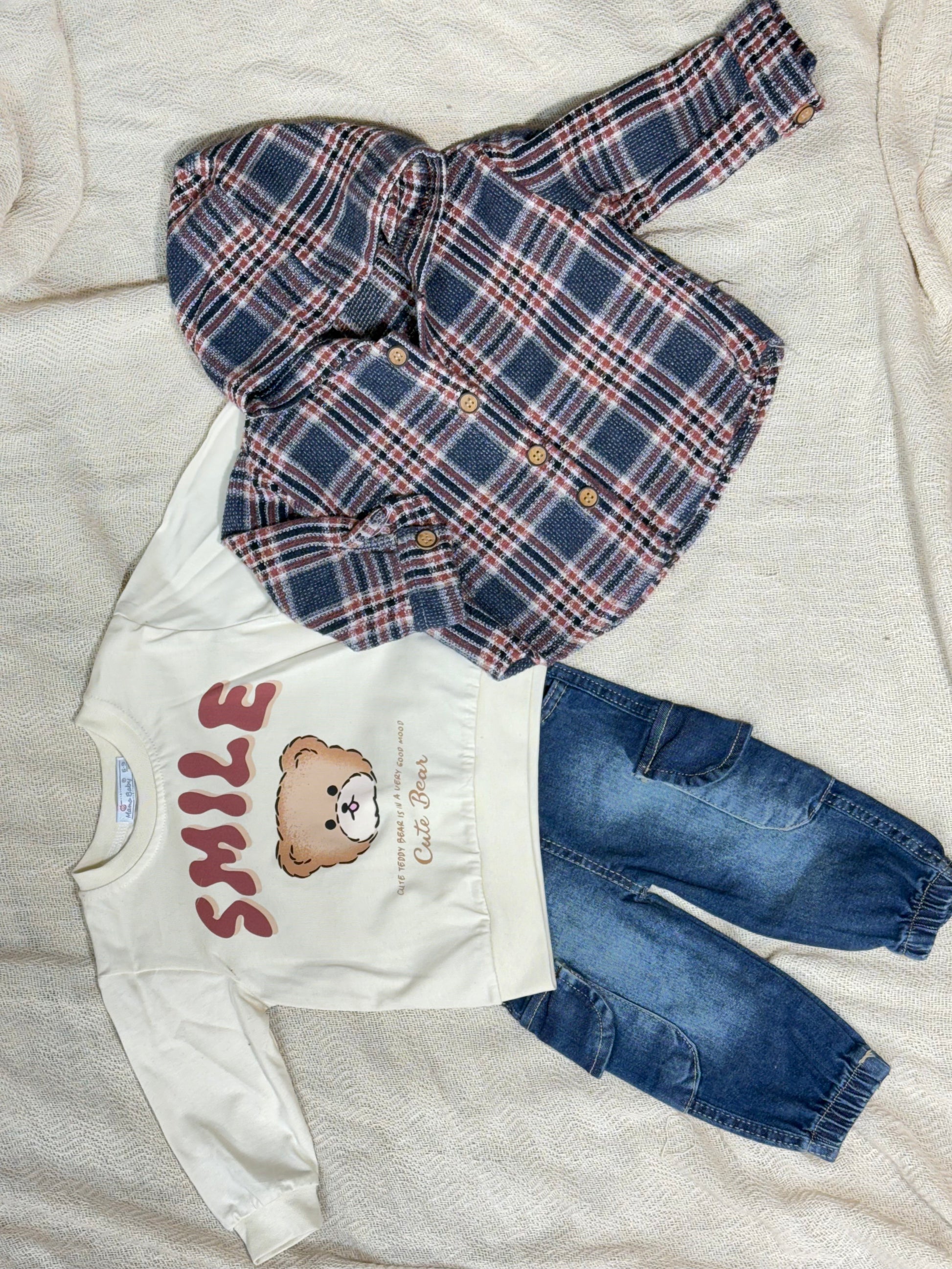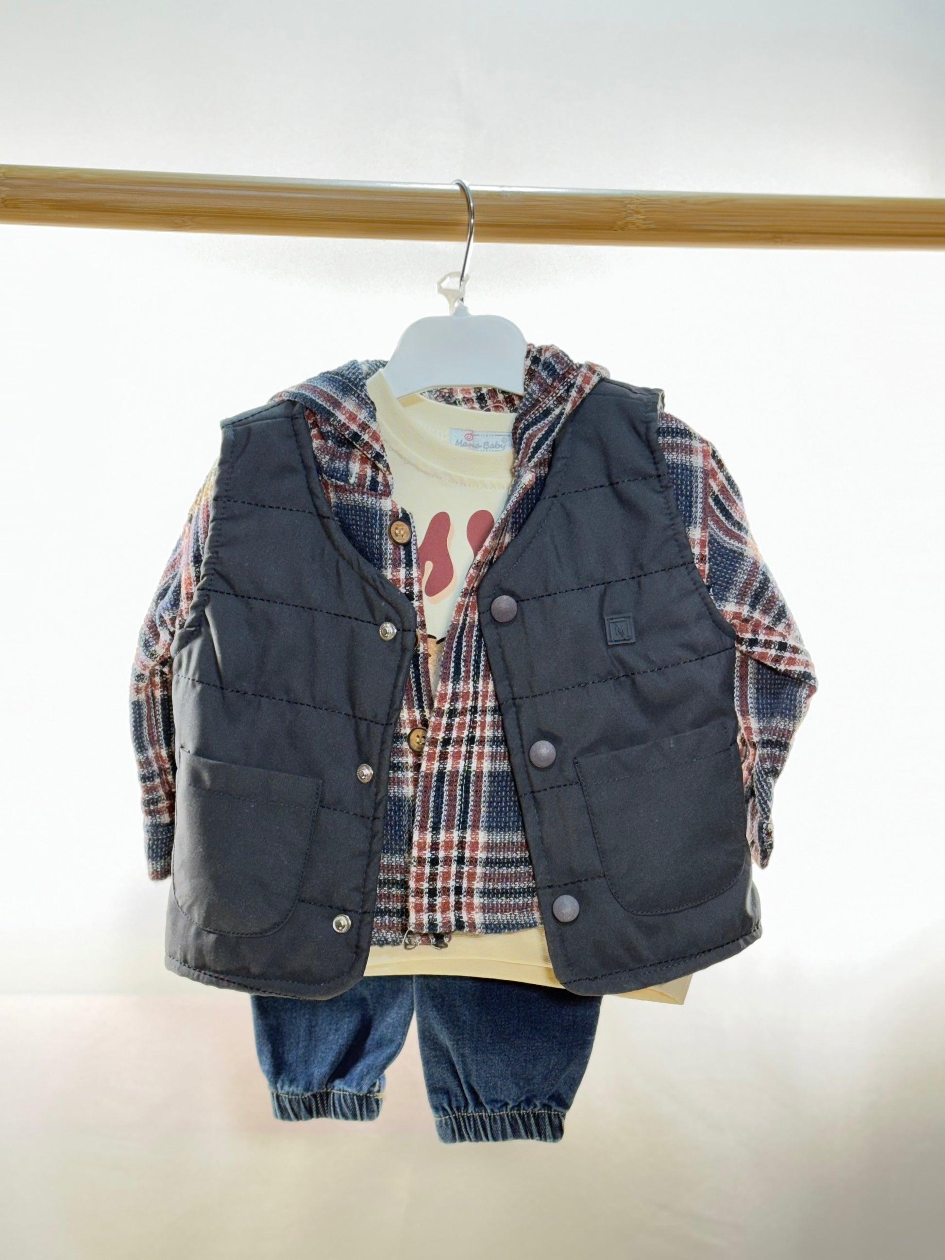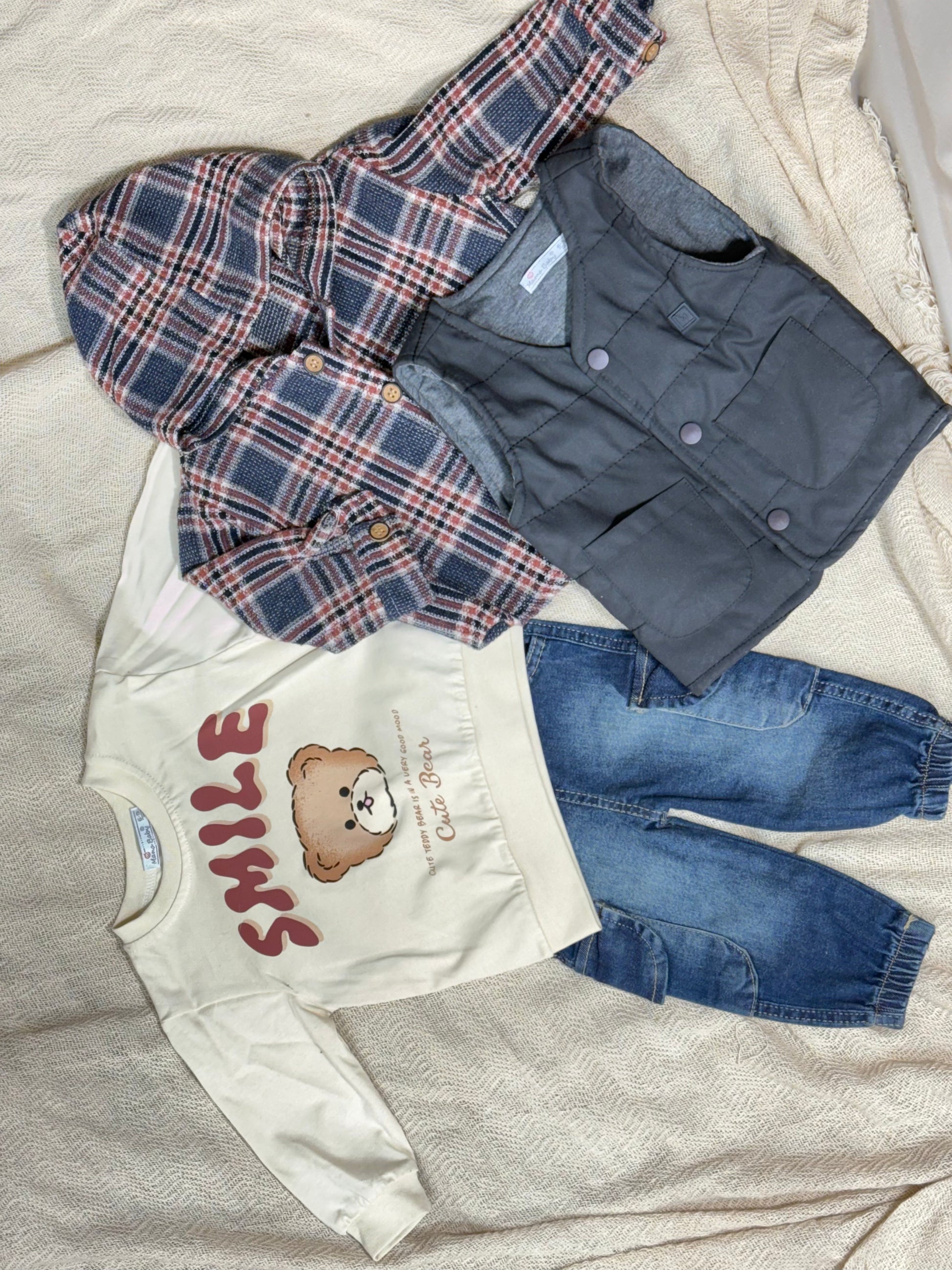 Komplet za decake sa prslukom,natkosuljom,bluzom i farmerkama.