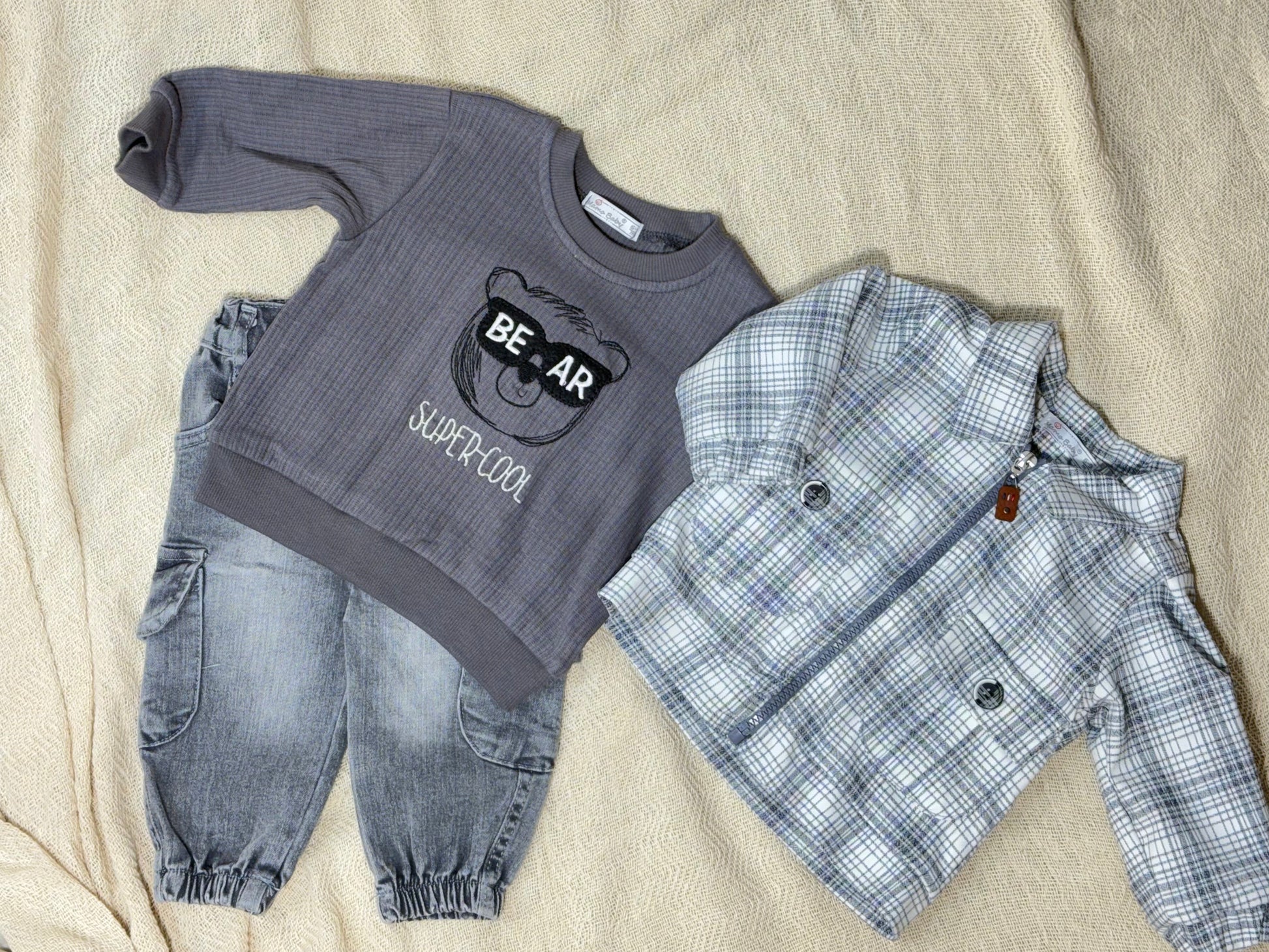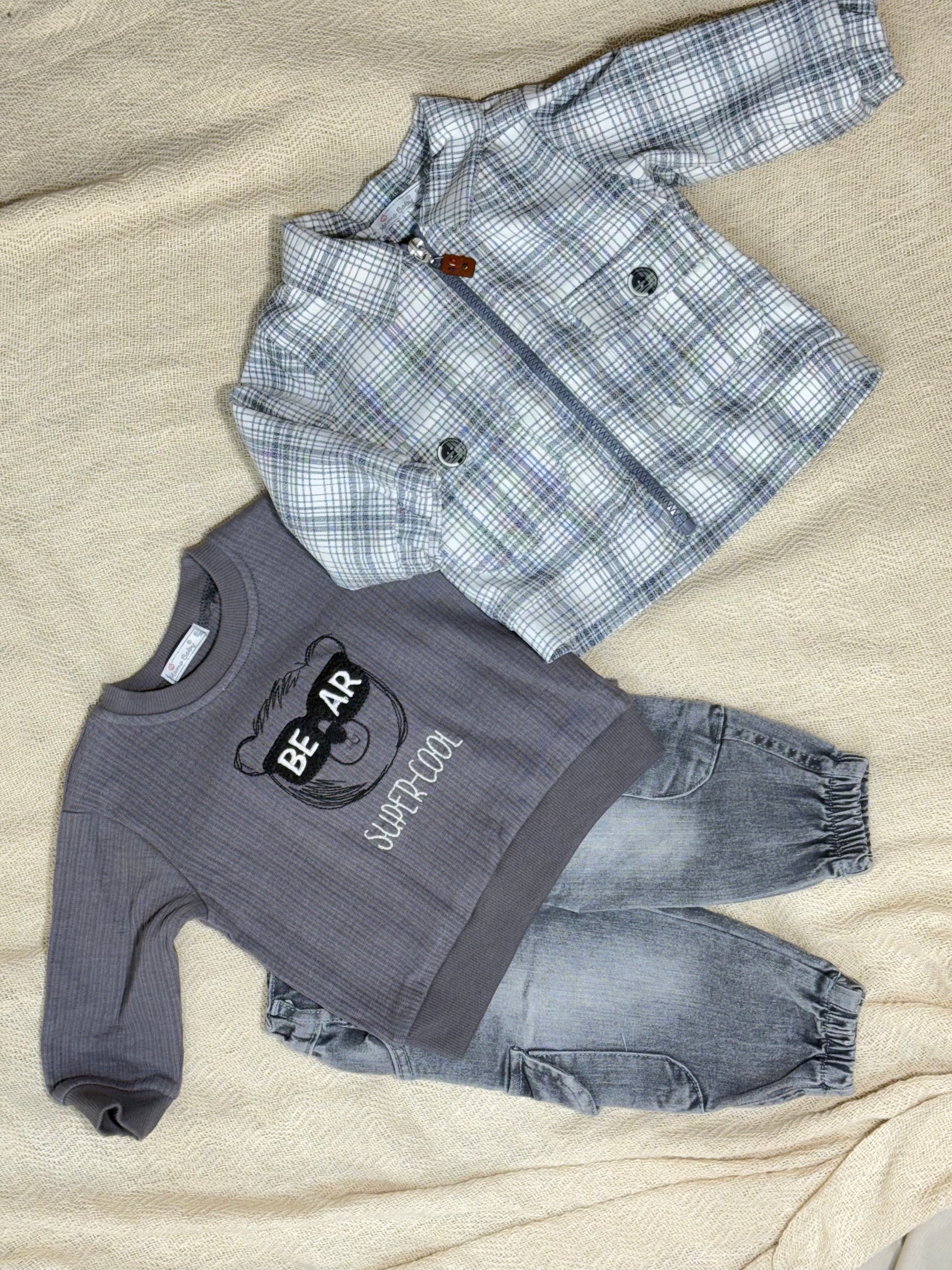 Trodelni komplet za decake,natkosulja,duks i farmerice.